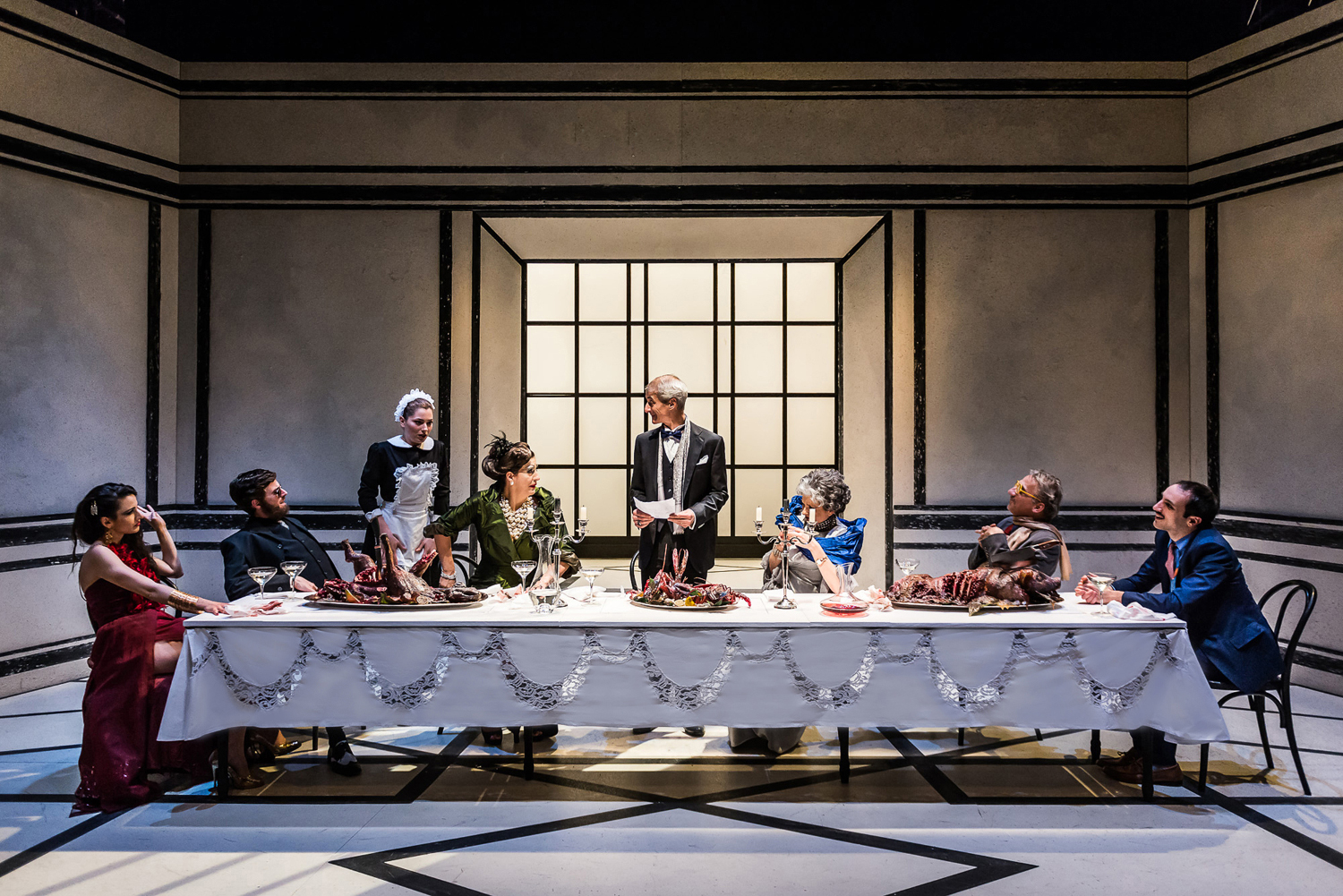 “Un direttore di banca, il giorno del suo compleanno invita gli amici a cena. È un anniversario speciale per lui: giunto all’apice della carriera, vuole condividere questo momento con le persone che più gli sono vicine, con le quali ha condiviso tanti momenti importanti. Prepara anche un discorso per ringraziare tutti ma, proprio mentre lo legge, il maggiordomo comunica che alla porta c’è un uomo: un ispettore di polizia venuto proprio per lui, per il direttore…”. “Souper”, di Ferenc Molnàr, in scena fino al prossimo 27 Novembre , al Teatro Bellini di Napoli, nell’adattamento di Fausto Paravidino, è uno spettacolo, dal testo sorprendentemente attuale, nonostante sia stato scritto nel 1930. Uno spaccato di società, la borghesia, colta e guida del paese, spiata e raccontata con atroce sensibilità. Un uomo, che ha fatto carriera li, dove fa più comodo essere, tra le persone importanti, tra i quadri del paese. I suoi amici, corte insipida e spesso mediocre, ai piedi ed al gusto del proprio signore. E poi? E poi il colpo ad effetto, il punto di non ritorno. La polizia, un probabile arresto, un ipotetico reato. Ecco, tutto, che crolla. I legami, la serenità, l’esigenza di dirsi “amici”. Paravidino, con superba intuizione, si avvale di un efficace supporto didascalico, per raccontare, ancor meglio, ciò che realmente, avviene, all’interno di certe storie. Quali dinamiche possono tenere insieme un gruppo di persone, e quali possono spingerle allo scontro. Filippo Borghi, Adriano Braidotti, Federica De Benedittis, Ester Galazzi, Andrea Germani, Lara Komar, Riccardo Maranzana, Francesco Migliaccio, Maria Grazia Plos, in scena, danno vita ad un intensa rappresentazione del potere. Volgare, superficiale, decadente. Fausto Paravidino, dirige al meglio, un gruppo di attori affiatato e sicuro. Racconta debolezze e sottolinea i tratti della miseria umana. I tratti di chi, spinto da insaziabile arrivismo, sacrifica ogni cosa, anche la stessa dignità, per poi ritrovarsi, alla fine del percorso, con intorno e poi dentro di se, tutto sommato, niente.